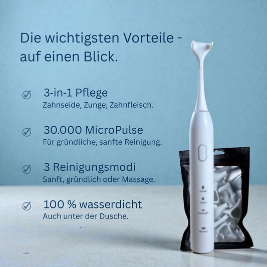 clenzii reinigt elektrisch – ohne Faden, ohne Ziehen, ohne Wasser.